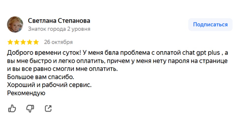 Пример: успешно провели оплату ChatGPT Plus для Светланы