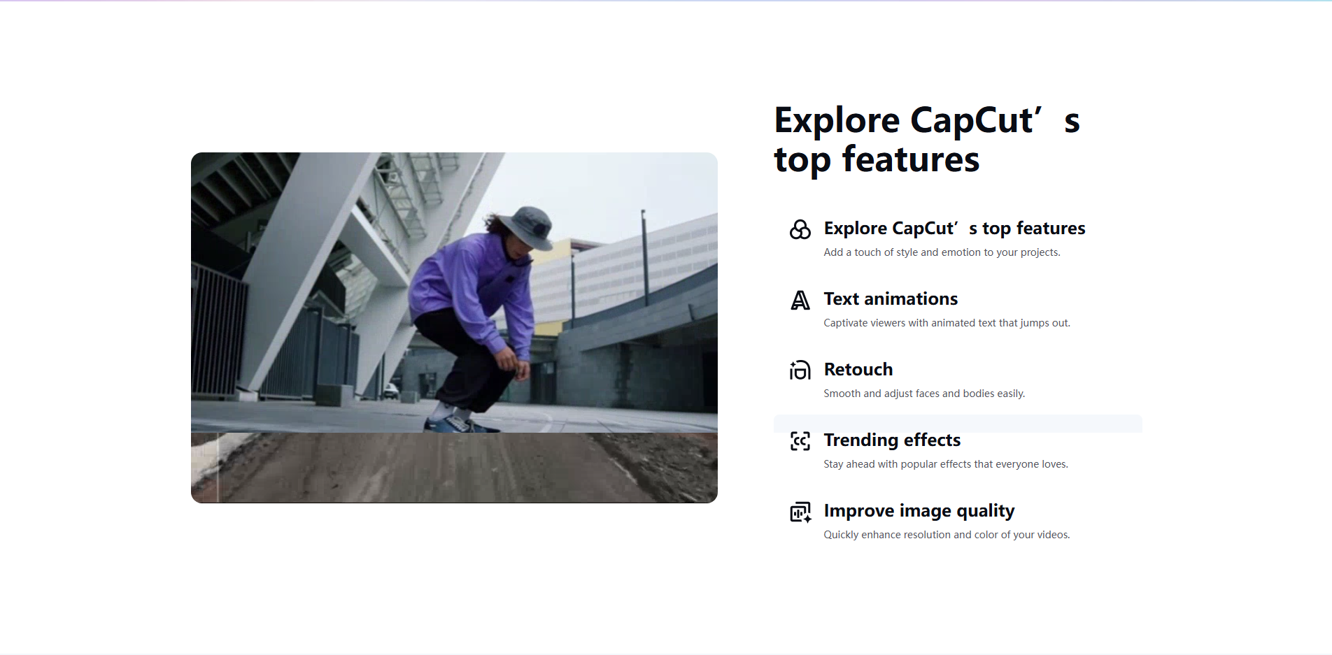 CapCut – не просто очередной видеоредактор, а настоящая творческая студия в смартфоне или компьютере. Интуитивно понятный интерфейс позволяет даже новичкам монтировать ролики профессионального уровня. Хотите добавить трендовую музыку, стильные эффекты, анимированные титры или автоматически сгенерировать субтитры к видео? С «КапКут» это становится возможным всего за пару кликов.