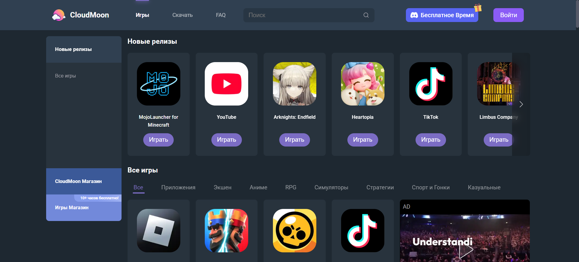- Быстрый запуск. Вам не придётся скачивать и инсталлировать игры. Просто заходите на сайт облака, находите нужный тайтл, кликаете кнопку «Играть».