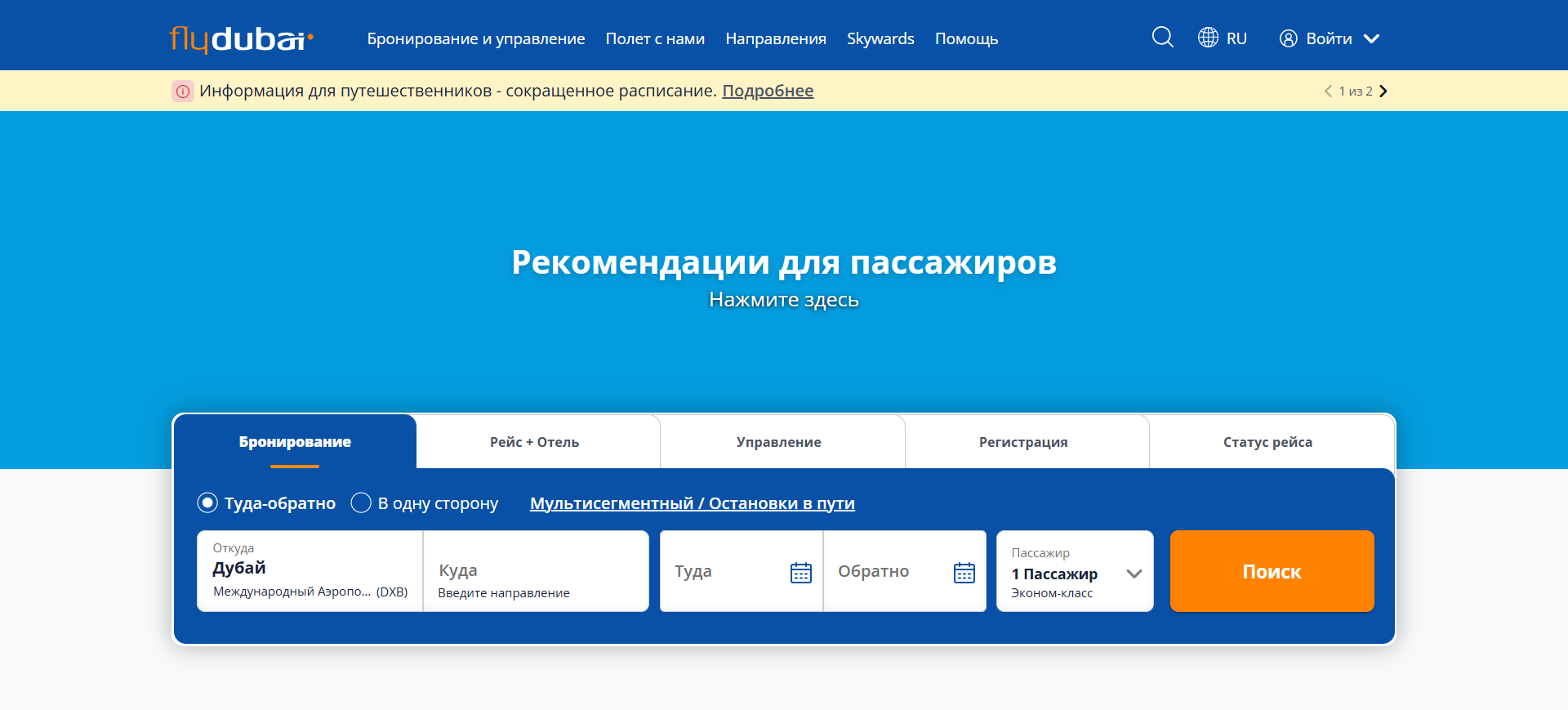 Пошаговая инструкция: бронируем перелёт в «ФлайДубай»