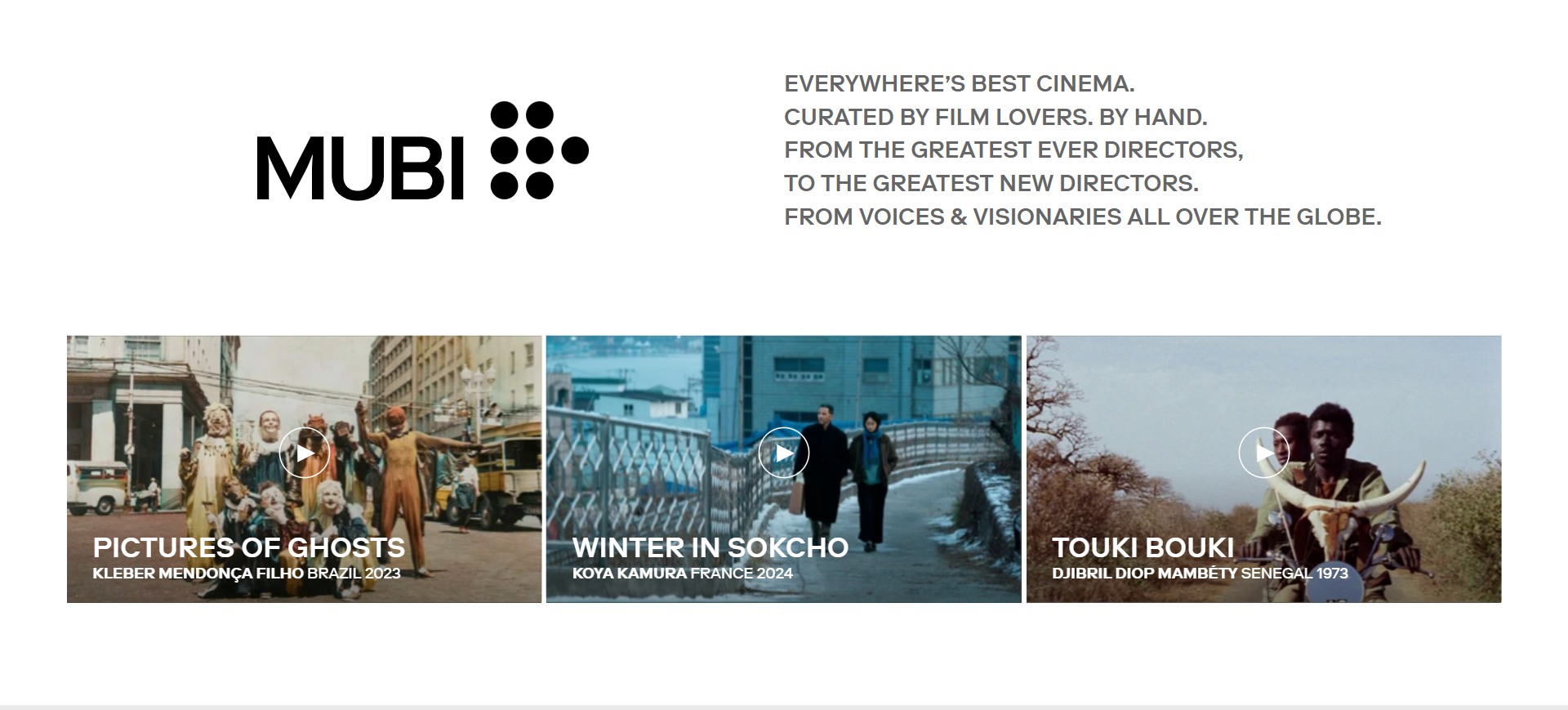 MUBI – виртуальная синематека, созданная фанатами для фанатов. Главная отличительная черта платформы – ручное кураторство. Здесь нет бездушных алгоритмов, которые рекомендуют кино на основе предыдущих кликов и просмотров. Команда экспертов платформы ежедневно отбирает фильмы, которые действительно заслуживают внимания.