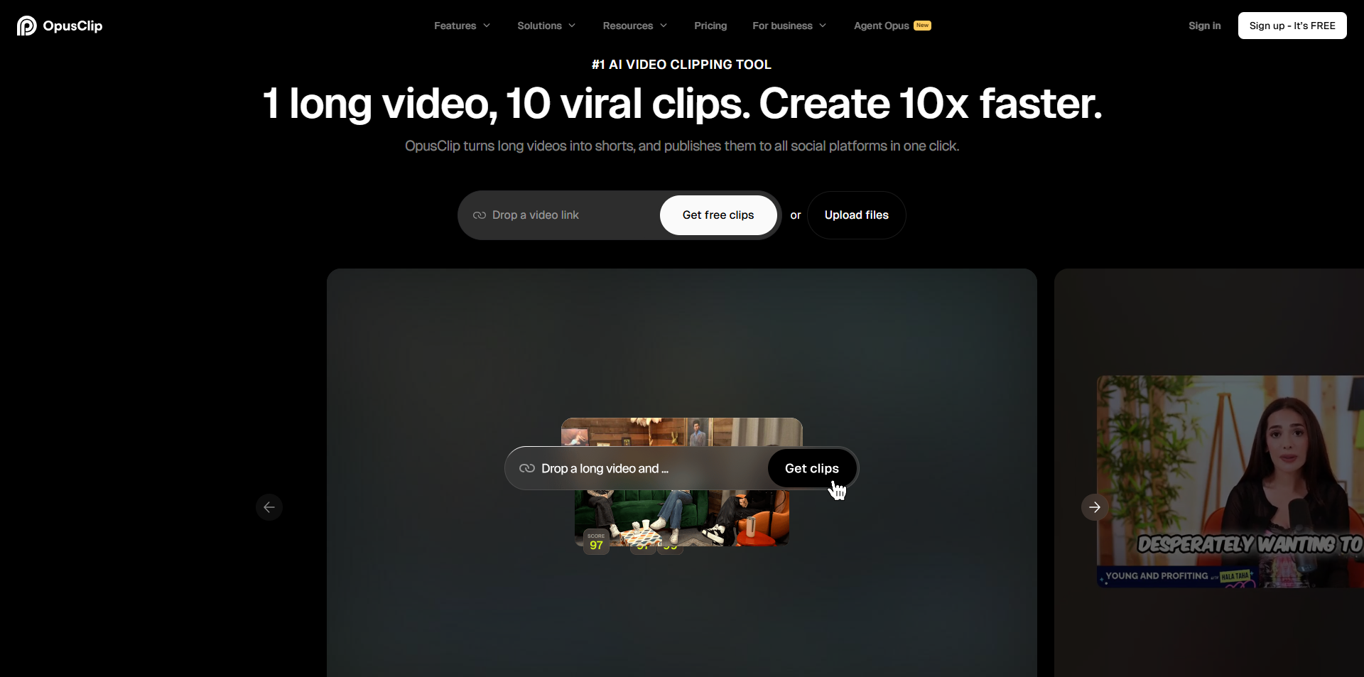Opus Clip – это не просто редактор в привычном понимании. Это AI-видеоинженер, который работает, пока вы занимаетесь действительно важными делами. Его главная задача – превратить длинный, содержательный контент в поток коротких роликов для Reels, YouTube Shorts и TikTok.