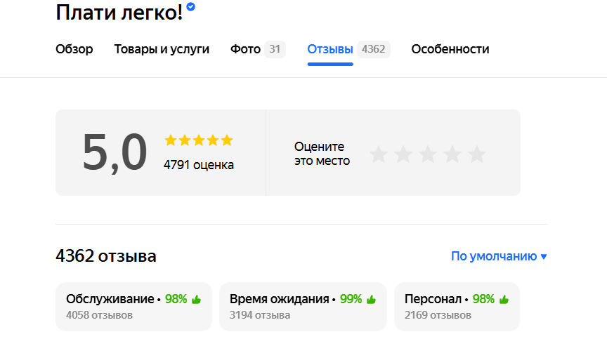 - - Мы первые в рейтинге Сервисов Альтернативных Оплат, с оценкой 4,9. Кстати, там тоже про нас написано более 50 отзывов;