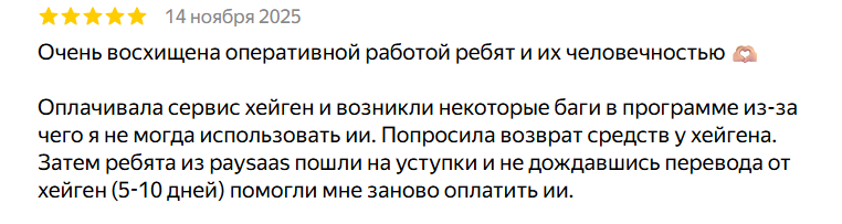 Платеж прошел успешно, но в самом сервисе HeyGen возникли технические баги. Из-за этого Екатерина не могла пользоваться инструментом, который оплатила. Она запросила возврат средств у HeyGen, но он должен был идти 5–10 дней. Вместо того чтобы заставлять клиентку ждать, ребята из «Плати Легко!» пошли на уступки и помогли оплатить подписку заново — авансом. Подробнее рассказываем в кейсе, написанном на основе отзыва нашей клиентки.